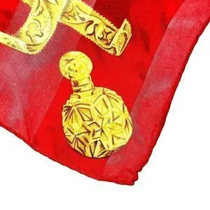 Vintage Scarf Ellen Tracy 80s Red Gold Chains 34 x 35