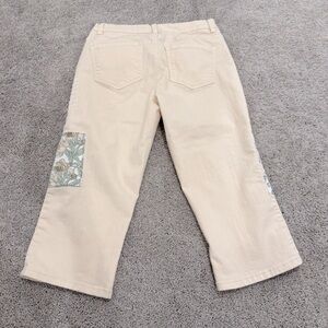 DG2 Diane Gilman Blue Jeans Embroidered Patchwork 10P, Stretch High-Rise Crop HSN, Excellent Used Condition, Measurements in Photos