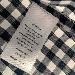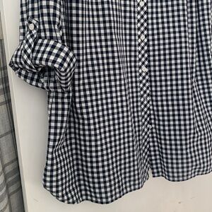 Classic Gingham, navy white tunic. Full sleeve, roll up tab button. Hip length measurements. Excellent preowned condition.