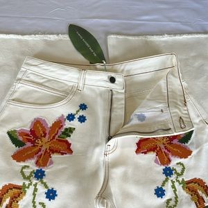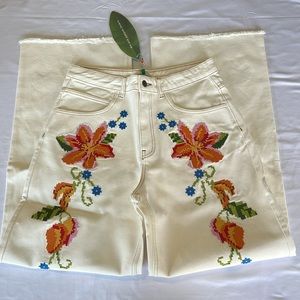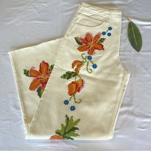 FARM RIO Embroidered Floral Twill Pants Size S. NEW WITH TAGS!