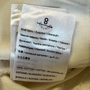 Like a denim/jean material, non-stretch, stiffer feel but really flattering and comfortable 💚