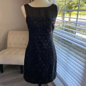 Sold!! PULITZER FULTON LACE DRESS Light-catching rhinestones pinpoint the center\of embroidered daisies decorating this luminous organza sheath with a sheer chiffon yoke provides textural contrast and closes the back with a charming ribbon bow Hidden back-zip closure. Fully lined. 100% polyester RETAIL $348.00 BLACK DAISY FLORAL EYELET NEW WITHOUT TAGS