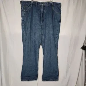 Carhartt Mens 44x30 B172 DST Straight Leg Flannel Lined Medium Wash Jeans Blue