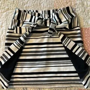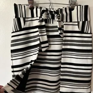 Women's cabi Grandstand Ponte Knit Black White Stripe Faux Wrap Pencil Skirt
