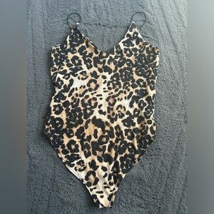 Gaze bodysuit, size small. Animal print soft stretchy material. Two snap buttons at the bottom.