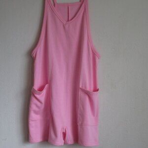 New Pink Sleeveless Pocketed V-Neck Jersey Romper