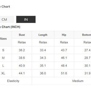 The size chart is listed above with the photos