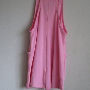 New, pink jumpsuit/romper that has a very relaxed fit. I would recommend sizing down a size unless you want a looser fit and want to layer it with multiple layers underneath