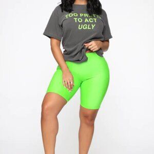 NWT Fashion Nova Rough Rider Biker Shorts Neon Lime Green M Vegan