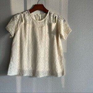 Monteau Girls Ivory All Over Lace Cold Shoulder Short Sleeve Top Size XL (14)