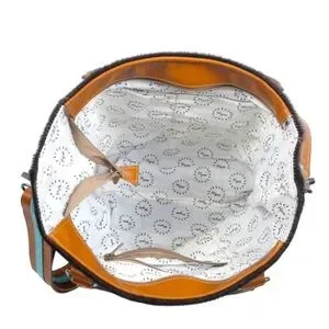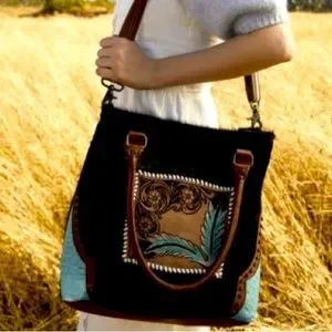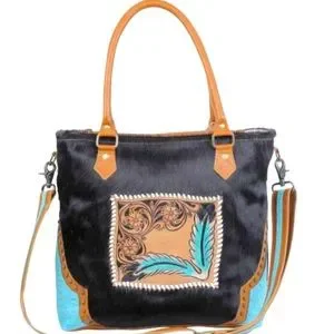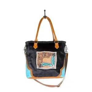 MYRA-HAND TOOLED LEATHER HAIR ON HANDBAG