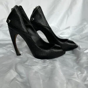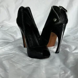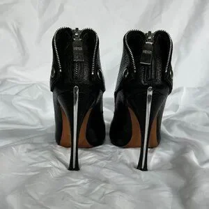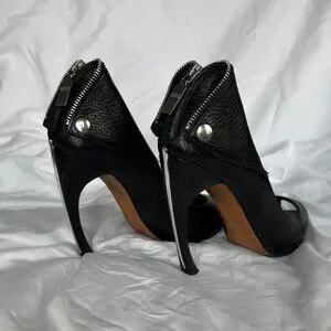 ALEXANDER MCQUEEN Faithful black leather zip biker peeptoe bootie EU37