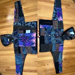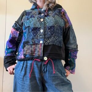 Upcycled Hoodie Sweatshirt Jacket Patchwork Fabric Scraps Frayed Apocalyptic