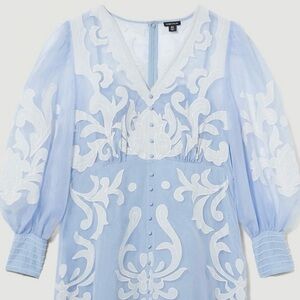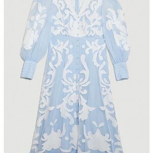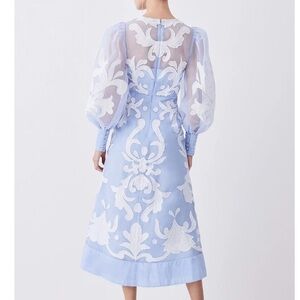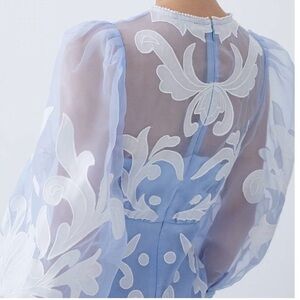 Crafted with floral applique motifs, this maxi dress exudes elegance. Delicate pearl embellishments around the neckline and cuffs create a premium polish, while sheer balloon sleeves add a beautiful element.