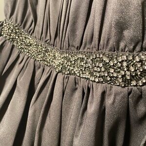 MM Couture by Miss Me dress with sparkly belt, size medium. Dress ties in the back, falls above the knee. Chiffon type fabric in a dark grey. Perfect for a holiday party!