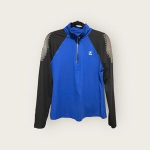 FILA large women’s long sleeve reflective athletic shirt with 3/4 zip.