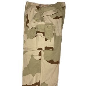 US Army Cargo Pants Men XL Green Camouflage Flat Front Drawstring Leg Button Fly.