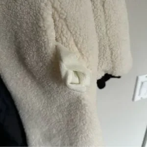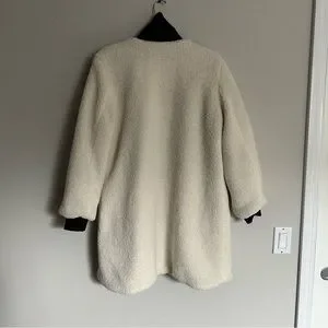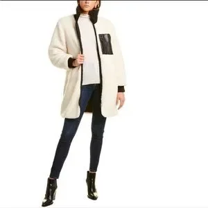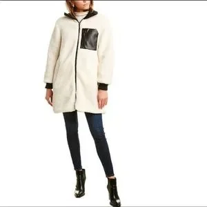 NVLT Anthropologie cream sherpa fleece longline jacket w/ faux leather accent