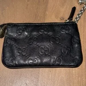 Gucci Guccissma leather embossed key chain coin wallet holder