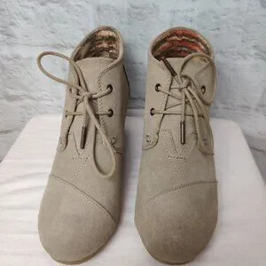 Toms Womens Ankle Booties Desert Wedge Heel Lace Up Boots Suede Taupe Tan Sz 8