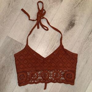 Burnt orange crocheted crop top, open back