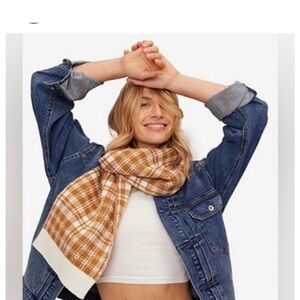 Timberland Womens Plaid Scarf in Wheat 10”x68” NWT