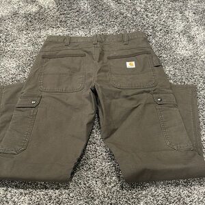 Like New Barely Worn Most Likely Tried on once or twice Didn’t make it out of the house. My husband spends good money on on his Handyman attire lol big money and never tries them on before hand ! His loss your gain Big Time !! Textured reinforcement Flexible Sustainable Rugged and Lightweight yet so Durable work Wear you can trust with maximum sustainability! The color of this pair is one of the newest/ latest combinations that Carhartt has to offer Side Cargo Pockets Flexibility Flex Fit Reinforced Americana Utility Pants Greenish Brownish New Technology New Twist on Carhartt