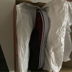 NWT custom hand painted Vans, beautiful detail, red and black, size 9 men or 10.5 women