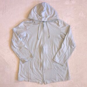 Eileen Fisher Organic Cotton Light Blue Quarter Sleeve Hoodie Zip-up Sweatshirt