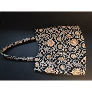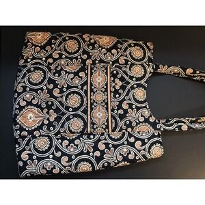 Pre-owned in very good condition. Vera Bradley Pattern-Retired.... TRENDY SHARP CURVY TOTE CAFF'E LATTE PATTERN PURSE BAG.... SNAP BUTTON CLOSURE... 1 SLEEVE POCKET OUTSIDE AND 1 ZIPPER POCKET INSIDE AND 2 SLEEVE POCKETS INSIDE.......STRAPS NOT ADJUSTABLE...