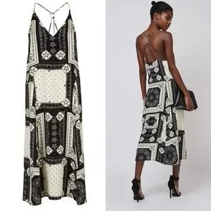 NWOT TOPSHOP black & white paisley midi faux satin dress