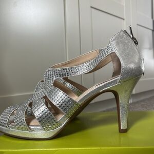 Silver diamond Alex Marie high heel shoe. Perfect for wedding or special occasion.