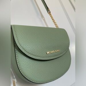 NWT Michael Kors Jet Set Small Half Dome Crossbody Leather Bag Green $198