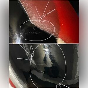 Condition is preowned with signs of wear, there are creases on both shoes on the sides, there are scratches on both toe boxes. There isn’t any cracking as pictured.