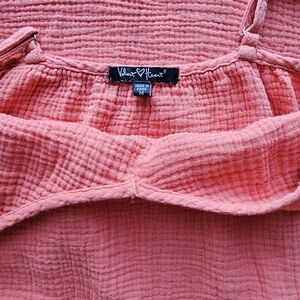 VELVET HEART ADELE SPAGHETTI STRAP GAUZY TIERED CAMI MIDI DRESS- Coral Size M
