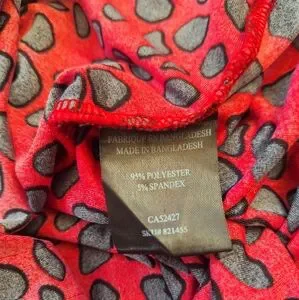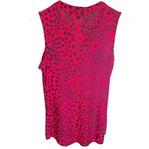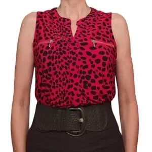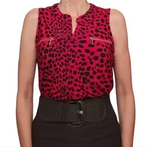 Lilly Morgan sleeveless red and black leopard shirt with zippers in front.