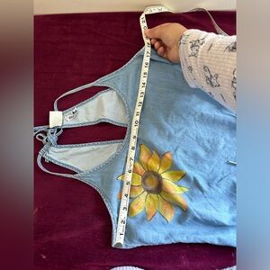 Vero Moda Denim Tie Waist Sun print Romper Size M