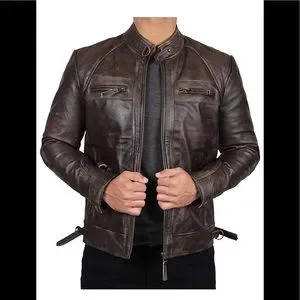 ๐ Diamond1 Tall Men Ruboff Real leather brown bomber jacket new With tags ๐