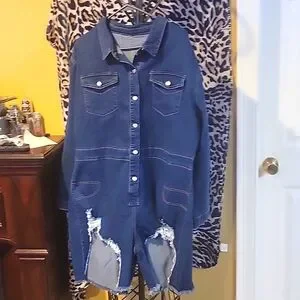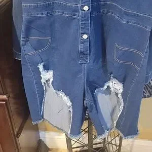 Deming distressed button-up short romper nwot. Stretchy material. The sleeve is approximately 24 inches, the pit to pit is approximately 24 inches. Bundle up and save ❤️