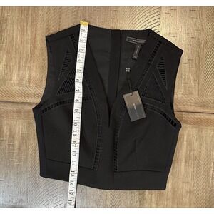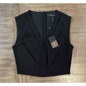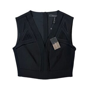 NWT BCBG MAXAZRIA Black Deep V-Neck Tank Crop Mesh Cutouts Womens Size XXS $198