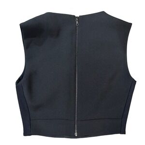 This new with tags BCBGMAXAZRIA tank top is a stylish addition to any wardrobe. With a deep V-neckline and mesh cutout designs, it's perfect for any occasion from travel to party/cocktail to casual wear. The sleeveless design features a zip closure and is made of a breathable and easy-to-care-for blend of polyester, spandex, and rayon. The solid black color and sleek design make it a great choice for anyone looking for a minimalist, classic, modern, preppy, or chic look. This top is a regular fit and comes in size XXS, making it perfect for anyone looking for a tank that is both stylish and comfortable.