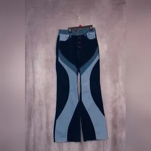 Fashion Nova Blue Denim Patchwork Flare Jeans ~ Size 11