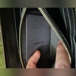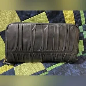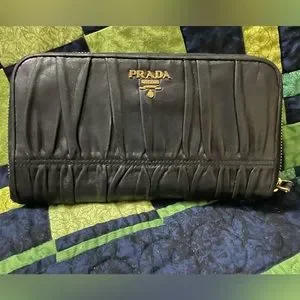 PRADA COA Nappa Gaufre Black Leather Roughed Clutch/Wallet