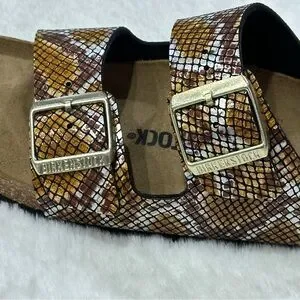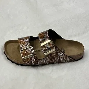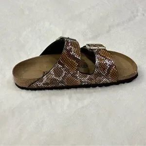 Brand New Birkenstock Arizona Sandals Python 2 Straps Brown Microfiber Snake Print Animal