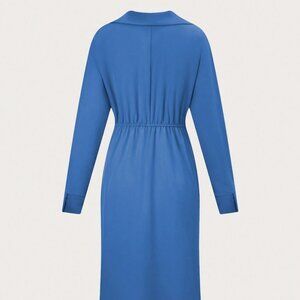 Blue Preppy Women's Batwing Sleeve Dress With Hidden Pockets