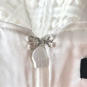 Fully lined with a hidden back hook/eye closure
