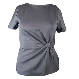 Express Womens Grey Side Knot Short Sleeve Fitted Stretch Shirt