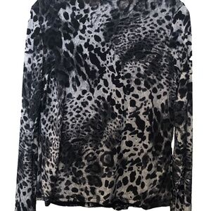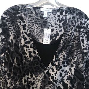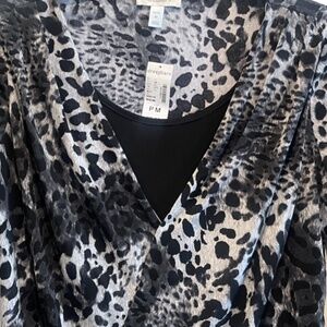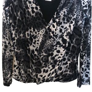 (NWT) Dress Barn Women's Black/Gray Leopard Long Sleeve Faux Wrap Top Size PM