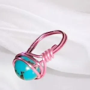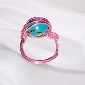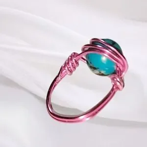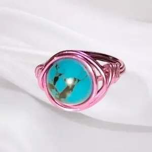 Hand Wired Ring with Blue and Black Reconstituted Turquoise Stone
