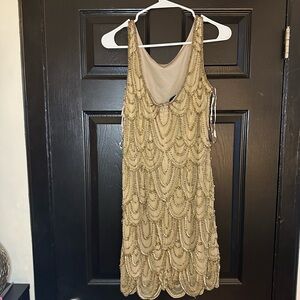 Only worn once - gold sequin shift dress, size 6, mini length, from Pisarro Nights (bought at Nordstrom originally). Great for weddings or Gatsby/Art deco style parties!